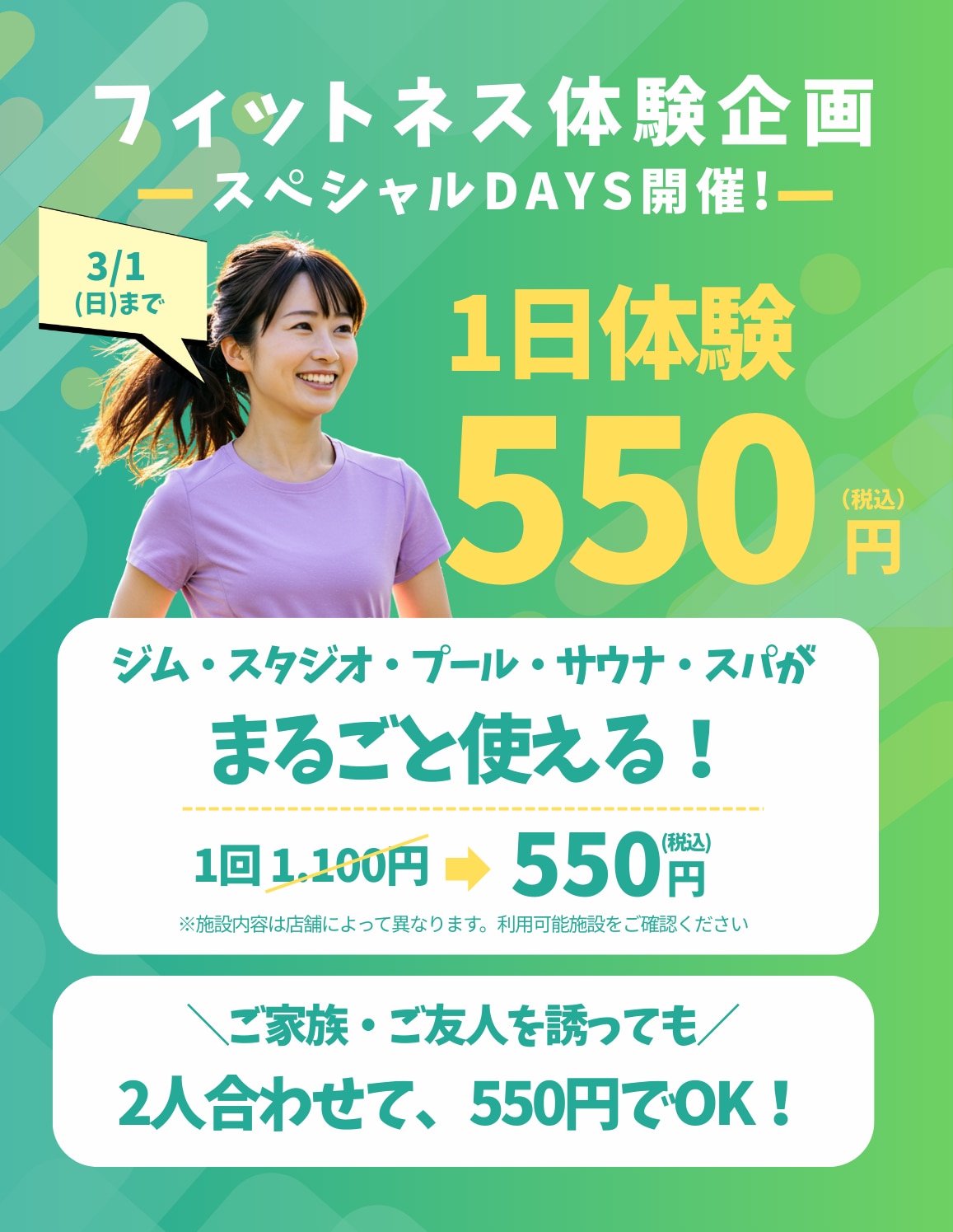 【体験内容】 ジム・スタジオ・プール・サウナ&スパ